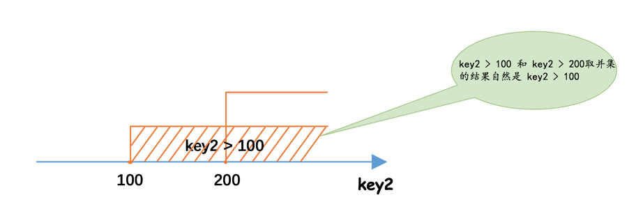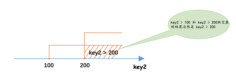 SELECT * FROM single_table WHERE key2 > 100; 也就是说最上面那个查询使用idx_key2的范围区间就是:(100, +∞)。