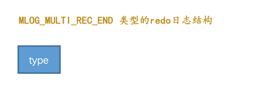 redo日志划分到一个组里边儿呢?设计InnoDB的大佬做了一个很简单的小把戏,就是在该组中的最后一条redo日志后边加上一条特殊类型的redo日志,该类型名称为MLOG_MULTI_REC_END,type字段对应的十进制数字为31,该类型的redo日志结构很简单,只有一个type字段: