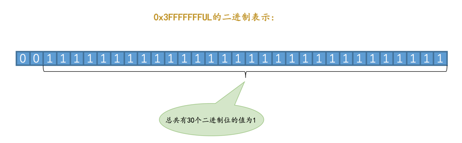 从图中可以看出,0x3FFFFFFFUL对应的二进制数的前2位为0,后30位的值都为1。我们刚开始学计算机的时候就学过,一个二进制位与0做与运算(&)的结果肯定是0,一个二进制位与1做与运算(&)的结果就是原值。让一个数和0x3FFFFFFFUL做与运算的意思就是要将该值的前2个比特位的值置为0,这样该值就肯定小于或等于0x3FFFFFFFUL了。这也就说明了,不论lsn多大,((lsn / 512) & 0x3FFFFFFFUL)的值肯定在0~0x3FFFFFFFUL之间,再加1的话肯定在1~0x40000000UL之间。而0x40000000UL这个值大家应该很熟悉,这个值就代表着1GB。也就是说系统最多能产生不重复的LOG_BLOCK_HDR_NO值只有1GB个。设计InnoDB的大佬规定redo日志文件组中包含的所有文件大小总和不得超过512GB,一个block大小是512字节,也就是说redo日志文件组中包含的block块最多为1GB个,所以有1GB个不重复的编号值也就够用了。