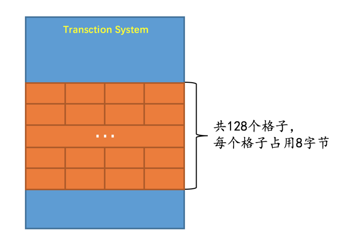 小贴士:只读事务并不需要分配Undo页面链表,MySQL 5.7中所有刚开启的事务默认都是只读事务,只有在事务执行过程中对记录做了某些改动时才会被升级为读写事务。 每个回滚段都对应着一个Rollback Segment Header页面,有128个回滚段,自然就要有128个Rollback Segment Header页面,这些页面的地址总得找个地方存一下吧!于是设计InnoDB的大佬在系统表空间的第5号页面的某个区域包含了128个8字节大小的格子: